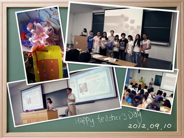 同学们首先拿出之前自制的手工贺卡,互相传阅,在上边写下对老师的祝福并且认真地署名。当老师踏进教室,同学们献上鲜花,同时献上最真诚的祝福,齐声说:“祝老师节日快乐!”,同时献上最热烈的掌声来表达对老师的尊重与祝福。任课教师非常感动,也跟我们讲了许多肺腑之言,真诚地向同学们表达了深深地谢意,老师觉得收到同学们的祝福既表现了同学们对老师的尊敬,也显示了同学们对自己的肯定,自己的付出没有白费,感到非常欣慰,并且表示作为一名人民教室,他感到十分光荣,愿意为此奉献一生,服务于大家。