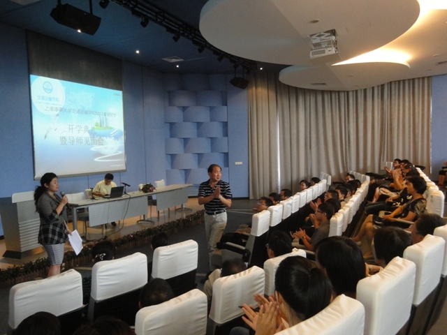 2012年9月12日(周三)13:30,澳门葡京娱乐 在交运报告厅召开2012级新入学研究生开学典礼暨导师见面会。澳门葡京娱乐 院长施欣教授和澳门葡京娱乐 多位教授、副教授莅临本次典礼,与2012级研究生零距离接触,为同学们开启新的学习生涯,点燃梦想火花指出了方向。