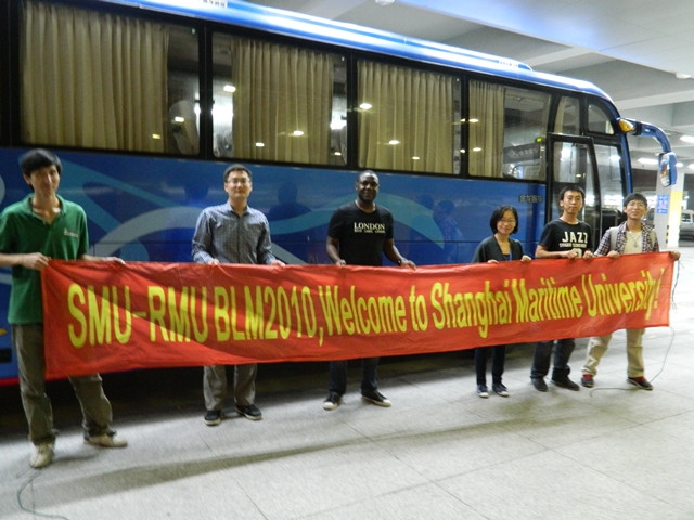 胡老师及六名志愿者很早赶到机场迎接。留学生经过出关、取行李等环节走出关口就看到了志愿者们扯着“WELCOME TO SHANGHAI MARITIME UNIVERSITY”的横幅,虽然经过了一天的奔波劳累立即感受到了上海海事大学师生的热情。之后全体合影后,志愿者帮助留学生搬行李上车。然后大巴车将留学生送到62号楼留学生宿舍楼下。志愿者又帮助留学生把行李搬回宿舍,安顿下来。志愿者们回到宿舍时已经凌晨三点多了。