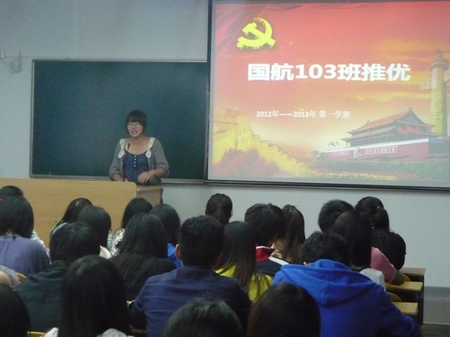 201210911日,国航交工10级各班陆续开展并完成了新学期推优工作,本次推优由国航交工10党支部副书记及组织委员主持,辅导员陈祯如出席并监督整个推优过程。