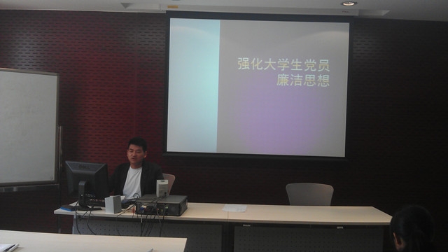 会上,朱老师首先强调了预备党员和积极分子该有的学习态度和生活态度,并指出目前存在的不足,鼓励大家要进行正确的自我定位,不断提升自己。随后,预备党员喻志文同志为大家作主题为“廉洁爱党”的报告。最后,朱老师对大家寄予了殷切希望,并提出了相应的要求,希望大家能严格要求自己,做好先锋模范带头作用。