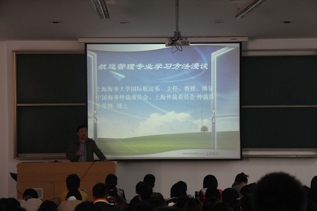 2012年10月31日下午,澳门葡京娱乐 航运管理系主任王学锋教授,在3D107举办了主题为《航运管理专业学习方法漫谈》的讲座,国航12级辅导员朱红红老师和全体12级航运管理新生参加了此次讲座。