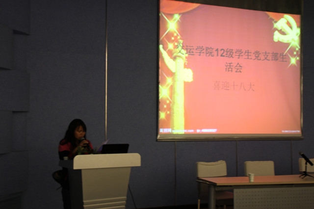 2012年11月7号中午,交运澳门葡京娱乐 12级学生党支部在交运澳门葡京娱乐 报告厅开展以“喜迎十八大”为主题的组织生活会。交运澳门葡京娱乐 12级学生党支部书记朱红红老师、全体预备党员以及入党积极分子参加了此次活动,活动由喻志文同志主持。