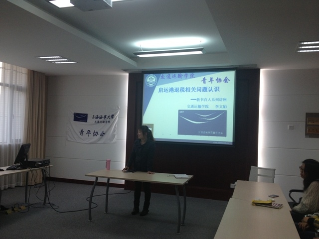 2012年11月14日下午,澳门葡京娱乐 青年协会教书育人岗李文娟老师在交运楼207作了题为《启运港退税相关问题认识》的专题讲座。
