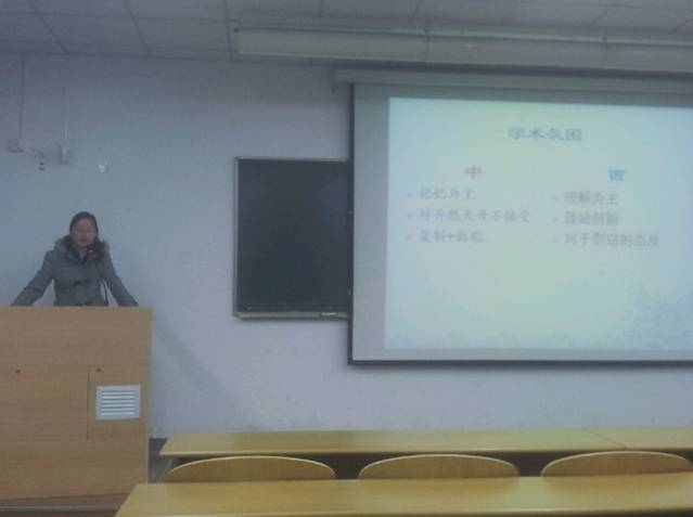 2012年11月21日下午,澳门葡京娱乐 高洁老师在2A104为大家作了题为《中西方高等教育比较》的专题讲座。