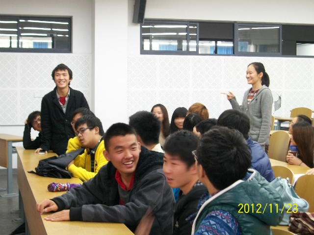 在班会中,首先邀请到了辅导员朱红红老师和万京老师给同学们讲话,进行大学生活学习指导和思想教育,两位老师强调了班级建设的重要性,提出班级是一个统一集体的概念,同时提醒同学们在学习、活动等方面的取舍及侧重点,对同学们英语等方面的学习提出了殷切的希望,并关切的询问了本周期中考试的情况,对同学们这段时间的努力成果做了充分的肯定。随后,国航122班5位班委分别就开学以来的两个多月的学习生活做了发言,表扬了对班级有突出贡献的同学,并对同学们提出了一些希望。最后,所有同学都做了生动俏皮的自我介绍,男女生还一起玩了抽签识人的游戏。