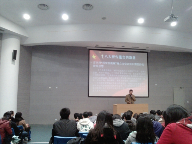 交运澳门葡京娱乐 于2012年11月25日在教学楼2C101对10级的学生开展了“学习十八大会议精神”的主题晚点名教育,以便让学生更好的了解十八大会议的有关内容和精神。