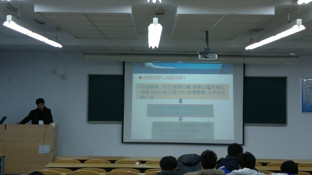 2012年12月05日下午,澳门葡京娱乐 物流专业余大勇老师在2A204为大家作了题为《供应合同》的专题讲座。