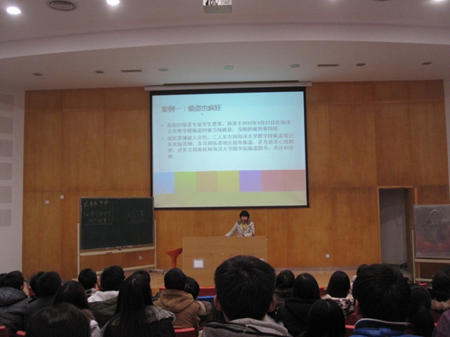 晚点名上,国航交工10级辅导员陈祯如老师从偷盗、诈骗、外校学生留住宿舍等方面提醒大家,要遵纪守法、提高警惕,保护自己的人身及财产安全,并做一个文明的大学生。陈老师通过列举大量身边鲜活的真实案例,结合播放安全教育PPT,图文并茂地强调了遵纪守法、注意安全的重要性。同学们认真聆听,深受感染。