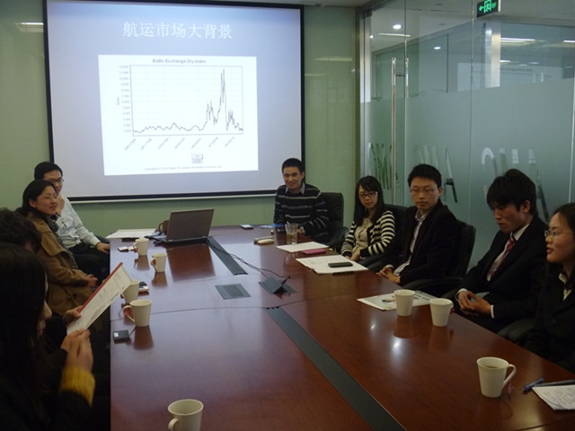 贾琦普先生首先介绍了上海敖仕海运有限公司企业概况及对人才的招聘要求,赵睿老师介绍了交运澳门葡京娱乐 今年毕业生的就业情况。张彦高、贾琦普先生对此次前来应聘的5名同学进行了群面,内容包括对干散货市场的了解情况以及未来职业规划等。赵睿老师还与张彦高、贾琦普董事就实习基地共建事宜进行了沟通。