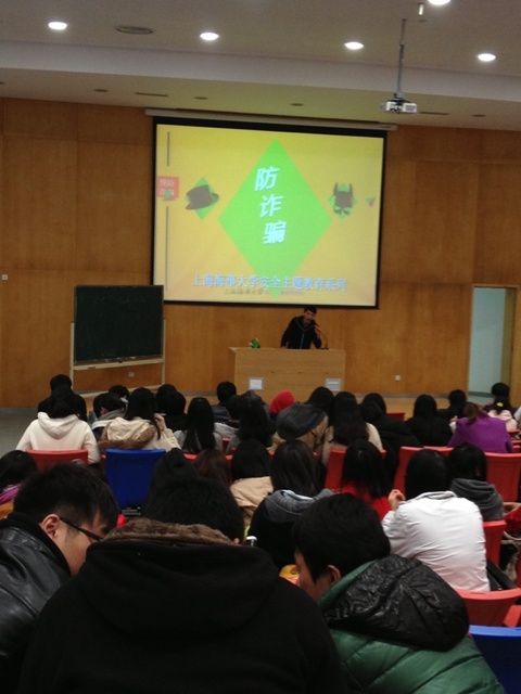此次安全教育主要针对最近频发的短信诈骗、碰瓷事件等,结合各方面的资料,为同学们介绍了最近常见的骗术,包括犯罪心理、诈骗手法以及易受骗上当的对象特征等。在讲解一些真实发生的案例时,同学们听的聚精会神,并且不时若有所思。安全教育还将近期十分猖獗的短信诈骗作为重点进行强调,向同学们展示了几十种诈骗短信的形式。