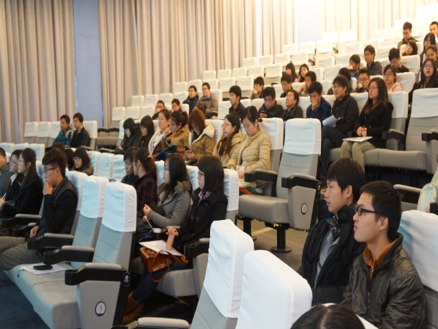 宣讲会以TNT快递公司的VCR开场,到场同学对公司有了大致了解。接着,刘小姐详细介绍了公司主要业务、部门组成、发展现状以及企业发展愿景。刘小姐重点了介绍了充满人文关怀的公司文化。然后为互动交流阶段,学生纷纷提问,企业招聘人员进行了耐心解答,气氛融洽。最后,公司两位HR分别与有意向进入TNT公司的同学进行了沟通,并进行了初步的面试。