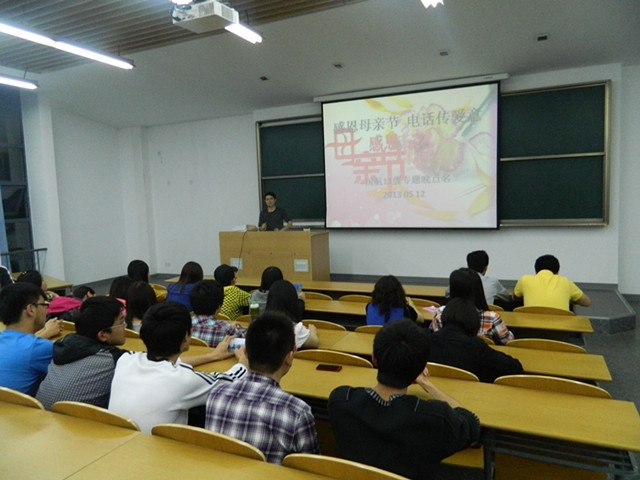 ur2young 在 15/05/2013 - 12:00 提交 当前位置主页 » 新闻动态 感恩母亲节 电话传爱意--记国航11级感恩母亲节专题晚点名 ur2young 在 周三, 05/15/2013 - 14:19 提交 2013年5月12日恰逢母亲节,国航11级开展了感恩母亲节专题晚点名活动。 感恩教育活动以一段催人泪下的视频开始,接下来都老师阐述了母亲对孩子博大的爱以及儿女对母亲的亏欠。接下来都老师提议每位同学在晚点名结束后都给自己的母亲打电话,大声喊一声:“妈妈我爱你!”。 这次活动为同学提供了一个表达自己对母亲爱意的机会,使那些羞于在自己母亲面前表达爱意的同学都有了喊出自己的爱的勇气。