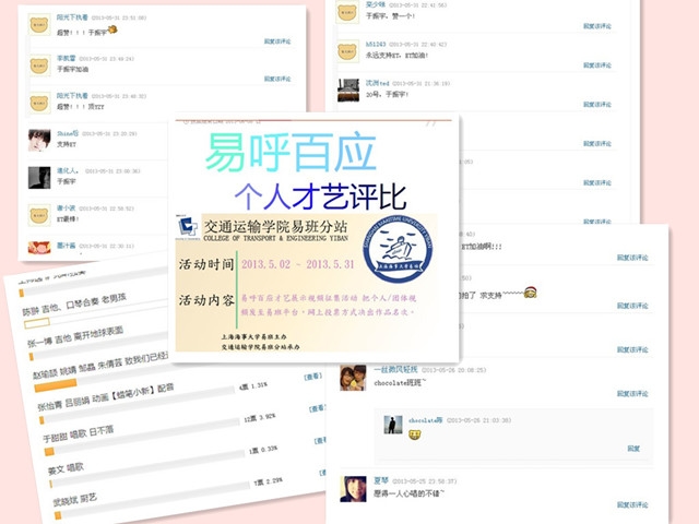 2013年5月15日起,交运易班工作站通过易班网举办了易呼百应—易班红人赛。