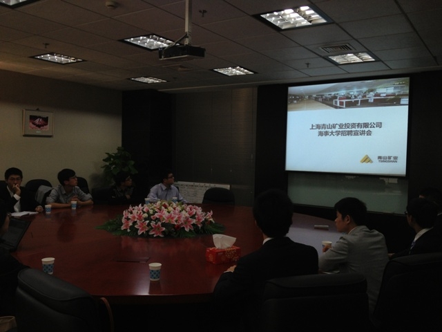2013年10月21日12:00,澳门葡京娱乐官网 党委副书记赵睿老师、辅导员陈祯如老师,带领10名大四学生,一同走访了上海青山矿业投资有限公司,公司总经理曹志强先生、人事行政经理仝文颖热情招待了我院师生。