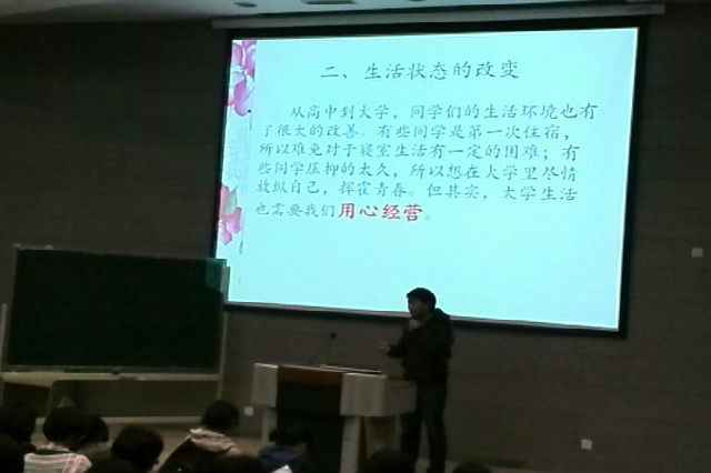 晚点名上刘老师针对13级同学们的进入大学后出的心理适应问题,从学习环境、生活状态、生涯规划三个方面进行了详细分析。首先,刘老师分析了学习环境的改变,强调大学需从心理上独立,一切靠自觉,并且提出了发现乐趣、学会自学和多读“杂书”的建议。其次刘老师分析了生活状态的改变,指出大学生活环境有很大改变,需要同学们的用心经营。最后刘建老师分析了生涯规划的设计,大学生应该保持积极性与好奇心,学点真本事,鼓励同学们在四年做好自己。
