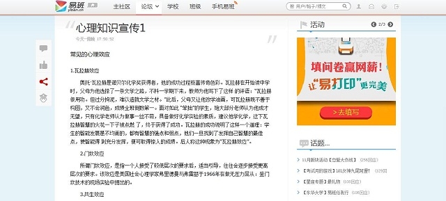 为了宣传大学生心理知识,预防大学生心理问题,11月25日晚开始交运澳门葡京娱乐 于易班平台上开展了首期日常心理知识宣传活动,本次活动覆盖交运澳门葡京娱乐 所有大一新生。