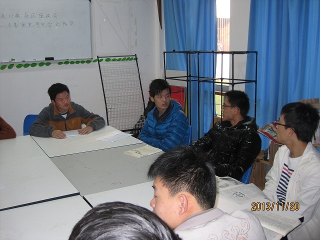 2013年11月20日下午13时,交运物流11级各班代表在51号楼自管会办公室就违章电器的使用冬季寝室用电安全及进行了一次安全座谈会。