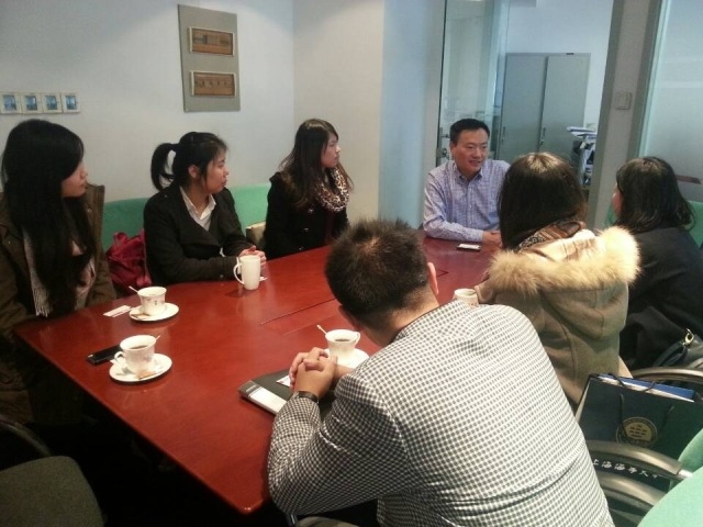 2013年11月29日下午,澳门葡京娱乐官网 辅导员陈祯如老师带领六名大四学生,一同走访了遍亚海运油轮咨询(上海)有限公司,公司总经理陈华清先生热情接待了我院师生。