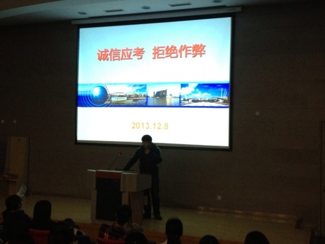2013年12月8日,澳门葡京娱乐 各辅导员利用晚点名时间给学生进行了一场以“诚信应考,拒绝作弊”为主题的宣传活动。