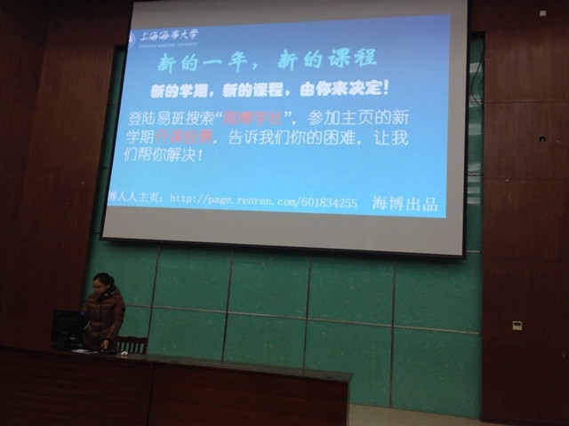 2013年12月22日晚点名时间,澳门葡京娱乐 海博学社在澳门葡京娱乐 各晚点名教室举行了下学期投票选课的宣传活动,由辅导员来进行宣传。