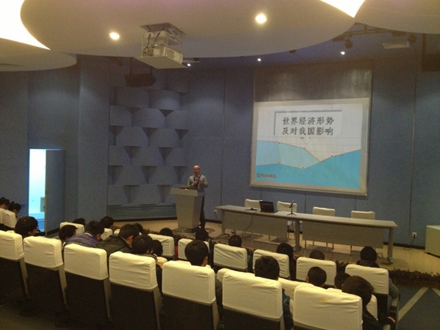 本次形势政策课讲座从经济、就业、贸易三方面深入。当今全球经济总体上依旧处于延续低迷的状态,发展明显减速,美、欧、日等发达国家仍在经济衰退中挣扎;与此同时,发达国家就业市场改进缓慢,劳动参与率创历史新低,经济衰退严重影响劳动力市场,失业率居高不下;而贸易保护主义的盛行也导致了贸易增长的显著下滑。对于我国而言,人民币由想“显著低估”转变为“适度低估”,外需收缩和摩擦增多等因素直接冲击我国出口,热钱大进大出加大我国金融风险,全球贸易洗牌给我国带来巨大挑战。美欧等发达国家的“再工业化”,使得我国创新竞争力有被拉大的风险,因此,我国必须坚定不移地走自主创新的道路。