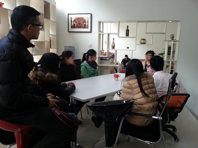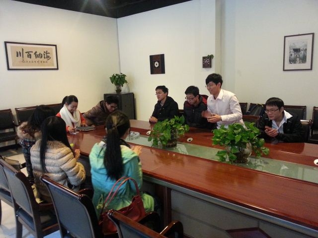 2014年3月5日下午,澳门葡京娱乐官网 党委副书记赵睿老师带领辅导员刘建老师、徐晓毅老师、都志亮老师、郝海光老师、兼职辅导员徐祥铭老师以及13名大三学生,一同走访了茗顺(上海)国际贸易有限公司,公司总经理姚颖、运营总监周晶、人事总监李丹热情接待了我院师生。