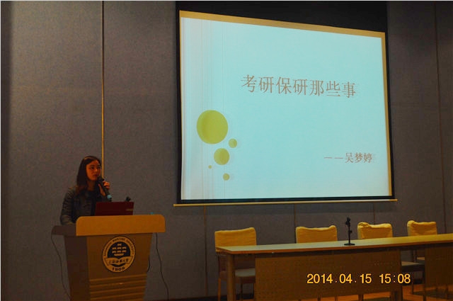 2014年4月15日下午15:00,交运澳门葡京娱乐 优秀毕业生交流会在交运报告厅成功举行。交流会由刘建老师主持,邀请到物流10级的吴梦婷、国航10级的蒋若凡以及物流10级的刘炀三位优秀的学长学姐为大家介绍他们的经验,交运澳门葡京娱乐 大一学生参加了本次交流会。
