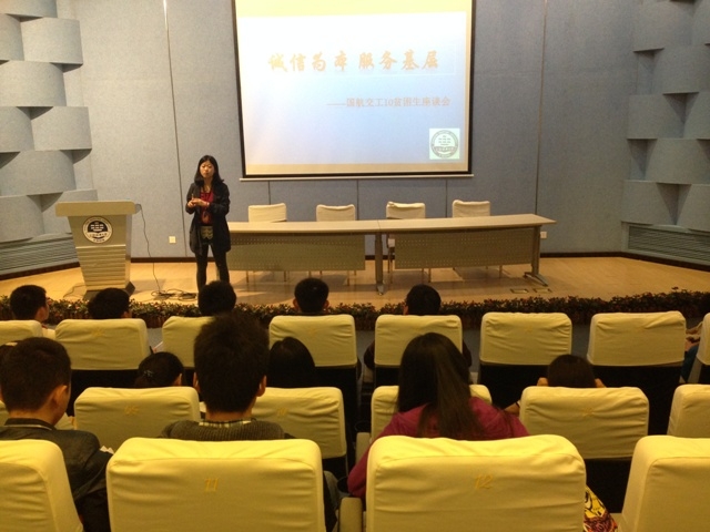 4月21日上午,国航交工10级召开贫困生座谈会,倡议2014届毕业生投身基层,回馈社会;诚信为本,积极还贷。