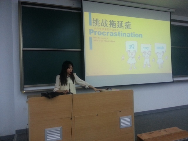 首先,朱老师为大家讲解了拖延症的定义,让大家清楚的了解拖延症,并对拖延症的形成原因进行了分析,总结了六条造成拖延的原因,包括无法抵制惑、对失败的逃避、压力焦虑和拖延的恶性循环等。随后,国航12级辅导员助理左芯瑞同学,结合自己与同学们的实际,分析大家的学生生活中哪些方面存在拖延症,以及这些拖延症会产生的危害,引起了同学们的共鸣,大家纷纷点头表示赞同。最后朱老师针对以上讲解,提出了拖延症的一些解决办法,对同学们有很大的帮助。
