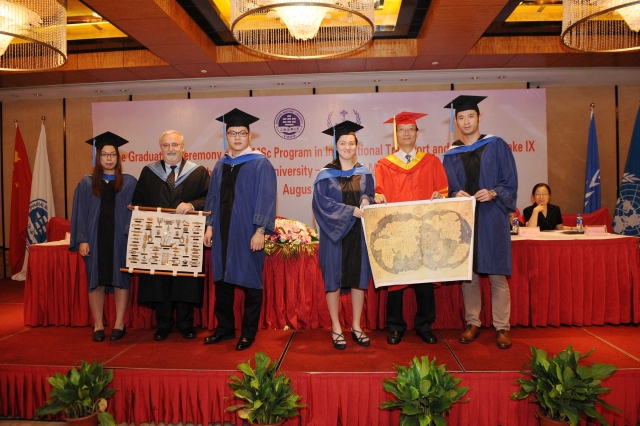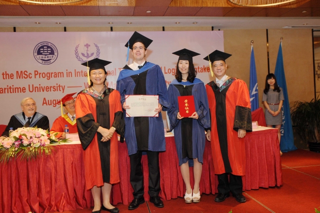 2014年8月23日上午,我校与世界海事大学合作举办的“国际运输与物流”硕士项目第九届学员毕业典礼在上海明悦酒店顺利举行。我校黄有方校长、金永兴副校长、世界海事大学代理校长尼尔•百利腾、马硕副校长、澳门葡京娱乐 、国际教育澳门葡京娱乐 、国际交流处、研究生院的相关领导及教师代表出席毕业典礼。