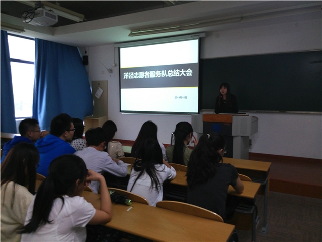 2014年10月10日下午15:45,洋泾街道志愿者服务队的总结大会在教学区2B205顺利举行。澳门葡京娱乐 党委副书记赵睿老师、指导辅导员朱红红老师、以及所有报名参加了本次志愿者服务队的同学参加了此次总结大会。