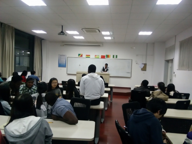 10月23日晚六时左右,物流班的同学们陆续来到109教室,加纳班的同学们也如约来到了教室。六时半,在活动主持人丁小婷同学简短介绍了本次活动目的后,交流活动正式开始。由最初彼此之间略显陌生的尴尬到后来越聊越多共同话题的手舞足蹈,欢声笑语盈满了整间教室。在学习生活旅游家乡特产等等方面的交流中,时间飞逝。活动最后,加纳班的同学代表上台表达了对于在座各位同学的感谢,表示很喜欢这样一群新朋友。同样,物流班的同学代表也上台表示了感谢,祝愿他们能在海大有一段美好的校园生活。七时半,活动正式结束。同学们依依惜别。