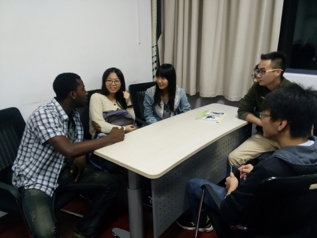 2014年10月23日星期四晚上,澳门葡京娱乐 12级物流管理专业的各班同学们与加纳班的同学们在澳门葡京娱乐 楼109进行了一次交流会,旨在提供国际交流生与中国学生的交流的机会,给予他们在海大学习生活上的帮助,建筑友谊的桥梁。