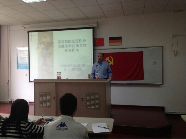 2014年10月29日下午13:30,澳门葡京娱乐 第二十期二级党校培训班在交运澳门葡京娱乐 楼115室开始了第三次课程。本次课程由两部分组成,第一部分:澳门葡京娱乐 党委书记冯晨曦老师作关于《继承、保持和发扬党的优良作风》的主题报告。第二部分:分组讨论。全体学员分成三个小组,分别由冯晨曦老师、赵睿老师、郝海光老师组织进行“通过学习,结合讲座,谈谈你有何新的认识?谈如何在大学生活中发挥积极分子的模范带头作用?”的讨论活动。
