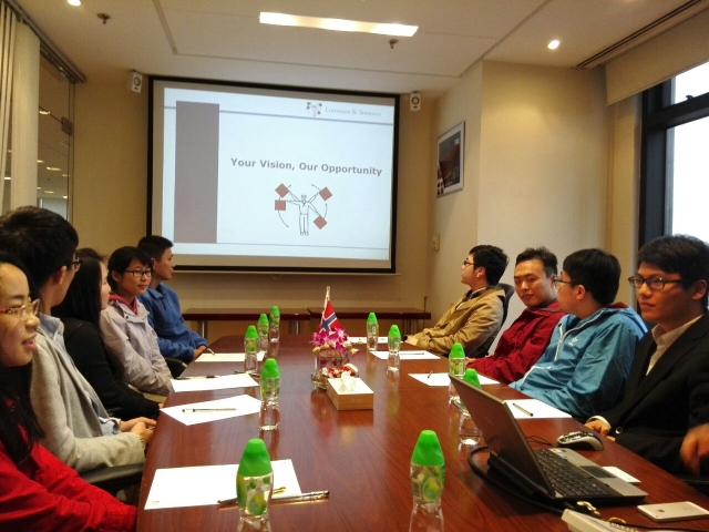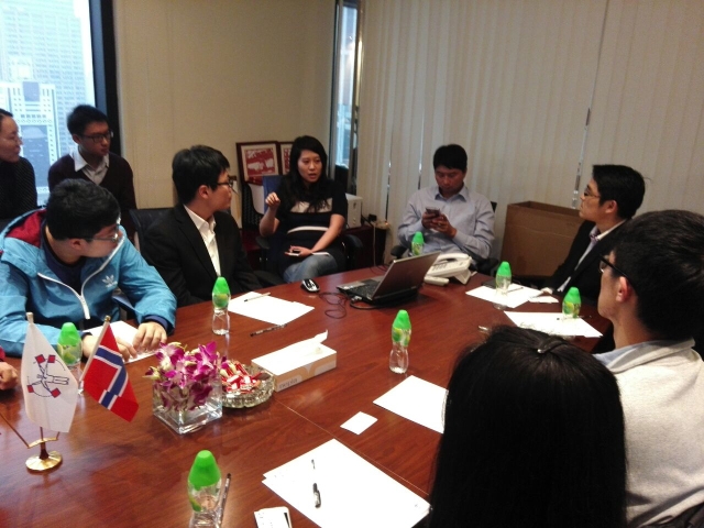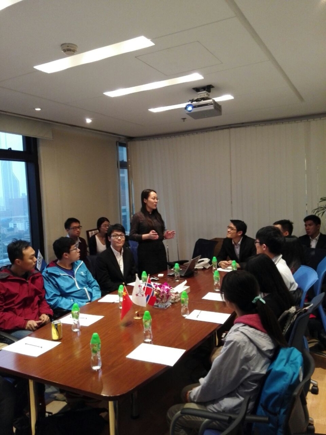 2014年11月25日下午,澳门葡京娱乐 学工办就业负责人都志亮老师带领来自国航11、物流11.国航12级的12名学生走访了挪威罗伦胜公司上海代表处。挪威罗伦胜公司上海代表处郑璐璐女士,丁海宁先生、罗雅洁女士、赵云汉先生热情接待了大家。