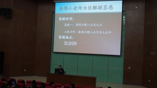 海博学社秉承着自创社以来的优良精神,一直致力于向同学们提供更好的学习方面的资源。为了为更多同学服务,帮助更多同学共同进步,宣扬良好学风,传承海博精神,海博学社针对挂科率较高的高等数学和工程力学两门学科,聘请了经验丰富、成绩优秀的前辈们担任“小老师”,专程为大家解答疑难问题,开设答疑专场。具体答疑时间和地点见下表:
