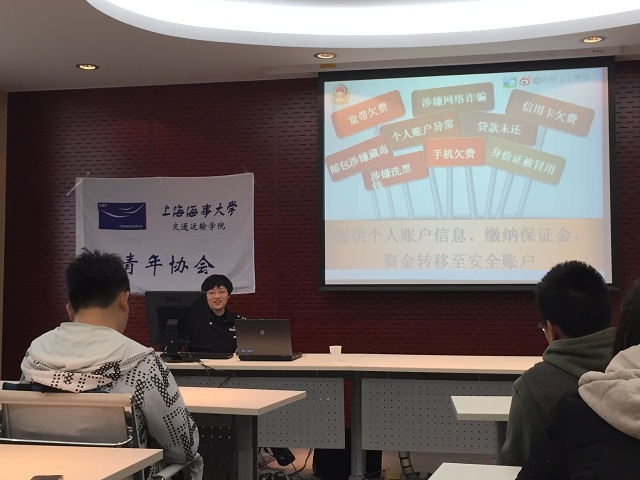 2015年1月6日,交运澳门葡京娱乐 青年协会邀请临港派出所的丁定义警官为我院学生干部开展了主题为“防电信诈骗类案件”的安全教育专题讲座。