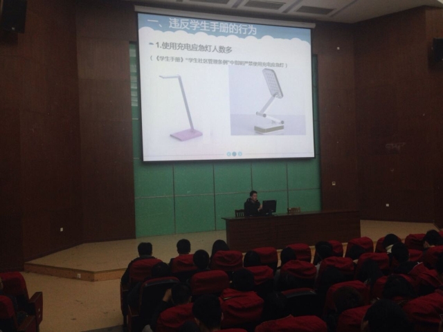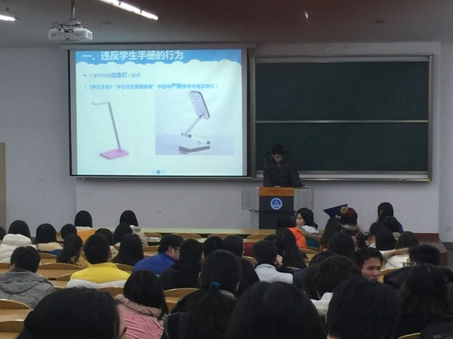 在此次晚点名中,各专业辅导员们就1月6日检查学生宿舍安全时发现的一系列问题进行了总结:其一是严禁学生在寝室中违章用电,即严禁学生在寝室私拉乱接电源线,以防学生公寓产生安全隐患威胁学生人身安全;其二是严禁学生在寝室中使用违章电器,以防学生公寓发生火灾等事故;其三强调了寝室卫生的重要性,严禁学生在储物间堆放纸箱。并结合《学生手册》上的相关规定强调了相关违纪处分条例。同学们都表示会严格律己,防患未然,在寝室安全用电,维护寝室安全。