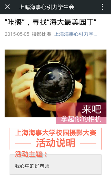 “咔嚓”寻找“海大最美园丁”——2015年上海海事大学校园摄影大赛活动拉开序幕