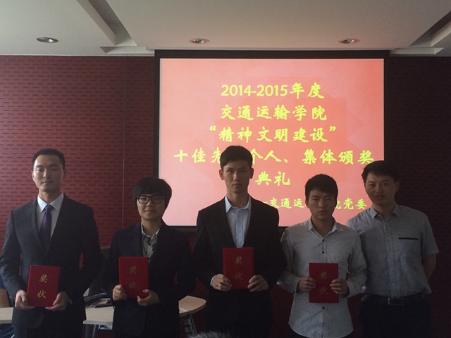 2015年5月20日下午13:30分,澳门葡京娱乐 在交运楼217举办“2014-2015学年澳门葡京娱乐 精神文明建设先进个人和集体”颁奖典礼。辅导员刘建、范晓云应邀出席了此次活动。