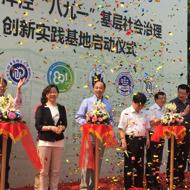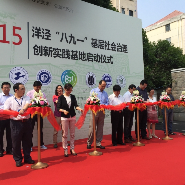 基于2014年暑假我院学生在洋泾街道的优秀志愿服务表现,在经过多次的接触与沟通后,我院与洋泾“八九一”社区初步达成了共建志愿者服务基地的合作意向。2015年6月5日上午9时,洋泾“八九一”基层社会治理创新实践基地启动仪式在洋泾八九一公益坊举行,澳门葡京娱乐 党委书记冯晨曦老师与辅导员朱红红老师出席了此次启动仪式,冯书记与洋泾“八九一”社区签署了合作备忘录,并参与了产学研基地启动剪彩仪式。此次启动仪式后,我院将组织学生参与洋泾社区各项志愿服务活动,助推社区公益活动的顺利进行。
