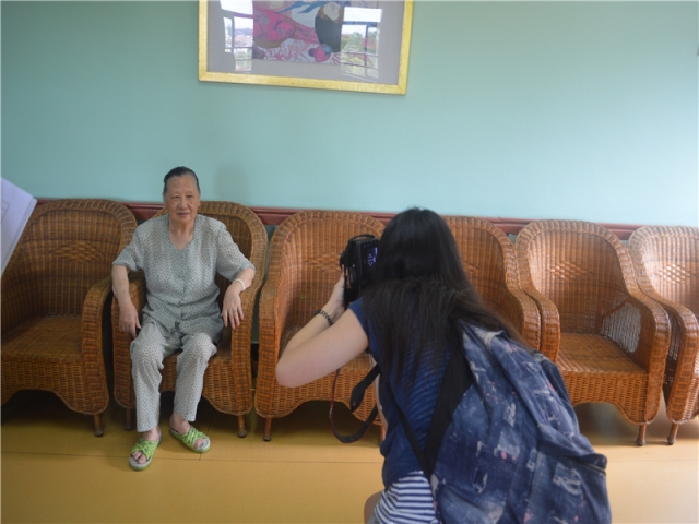 2015年8月7日,上海海事大学2015雷锋驿站服务队的两名有摄影特长的志愿者前往三林敬老院,发挥特长,贡献爱心,为老人们提供志愿摄影服务,采集老年人幸福生活照,准备在敬老院制作有个性的老年幸福笑脸墙,供老年人观赏回忆,丰富老年人生活。