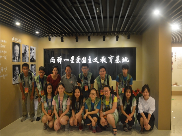8月18日上午9时,澳门葡京娱乐官网 党委副书记赵睿老师以及雷锋驿站志愿服务队指导老师朱红红老师,带领2015雷锋驿站志愿服务队的志愿者们参观了位于上钢街道德州路上的“两弹一星爱国主义教育基地”。在反法西斯胜利70周年的大背景下,通过了解“两弹一星”也是一种践行国防教育、培育青少年爱国爱和平思想的有效途径。