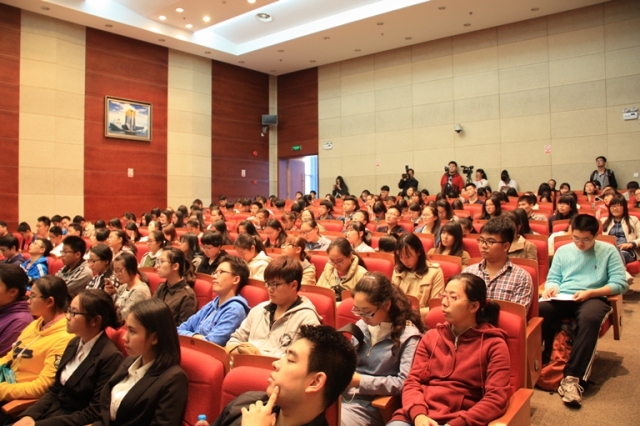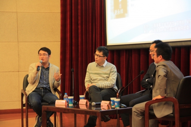 首先,主持人章强老师依次介绍了三位校友,并对他们的到来表示热烈的欢迎。接下来,三位到场嘉宾就如何合理分配学习精力这一问题,分享了自己的经验,着重强调了经济、金融课程的重要性,并鼓励同学们关注国家宏观新闻和政策走向。紧接着,三位校友与同学们交流了他们对毕业后应如何选择的看法,提倡各位同学先就业以积累经验,再考虑是否创业的问题。最后,三位嘉宾为同学们分析了航运界目前的发展状况及前景,激励各位同学努力学好专业知识,拓展学习实践能力,相信未来是属于年轻人的。