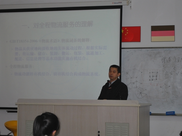 之后,朱晓宁教授为我院师生作为题为《从全程物流服务视角看运输企业经营》的学术报告。报告从“对全程物流服务的理解、从系统角度看全程物流服务、现代物流理念下的运输活动、物流服务模式、物流解决方案的思考——运输为例”这五个部分展开。朱晓宁教授生动地讲解了全程物流的特征、物流企业和运输企业的区别、现代物流对运输服务的变革等问题。他认为应将运输经营者放在整个物流体系中思考,指出运输企业需从运输服务的提供者转变为物流解决方案的制定者、并应从独自提供运输服务转变为与合作者共享利益。
