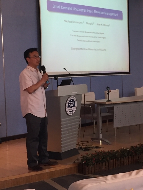 2016年5月11日下午,英国约克大学管理澳门葡京娱乐 Li Dong 博士应邀来在澳门葡京娱乐 报告厅为我院师生做学术报告,学术报告的题目是“Small Demand Unconstraining Methods for Revenue Management Systems "(收益管理系统的小量需求无约束需求预测方法研究)。该讲座主要介绍收益管理的主要内容和研究方法。Li Dong 博士罗列需求不确定下的需求预测方法,根据他的研究内容,提出小需求量背景下的需求预测模型,以汽车租赁公司的不同租赁时间的需求量预测为例,确定汽车租赁公司的汽车保有量,并通过对比已有的研究方法,验证小需求量预测方法取得良好的经济效益。