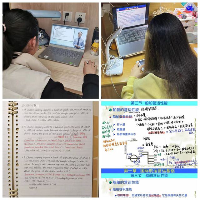 延迟开学、足不出舍,与同学相聚在线下课堂的心愿只能暂时搁置,“云课堂”成为澳门葡京娱乐 学生们学习生活的主旋律。“慎独”虽然是个难题,但老师的耐心指导、孜孜不倦,舍友之间的相互督促、暖心提醒,让学生投入到“云课堂”之中。课堂氛围如线下一样充满活力,学生们认真做好笔记,虚心请教,展现出良好的学习状态。除了按计划完成线上学习课程,学生们也积极参加澳门葡京娱乐 组织的线上讲座,跟随专家学者们的脚步,涉猎在课堂上接触不到的知识和行业的最新信息,在知识的海洋中自在遨游。新国航201徐闻廷说道:“习近平总书记曾说:‘广大青年要保持初生牛犊不怕虎的劲头,不懂就学,不会就练,没有条件就努力创造条件。’诚然,在疫情的影响下,学校无法进行线下授课,但我们要保持住学习的劲头,认真学习每一节线上课程,做好每一次习题,不负青春,不负党和国家的嘱托!”