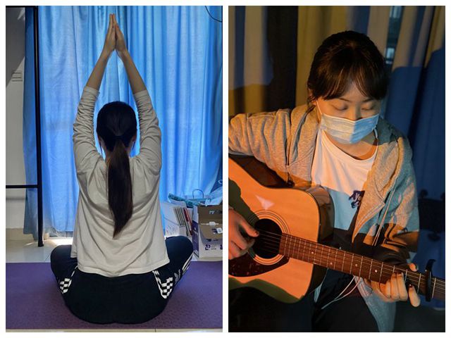 没有专门的舞台,澳门葡京娱乐 学生们以宿舍为单位、以寝室为舞台,在这一番小小天地中发挥自己的特长,培养自己的兴趣,一样为生活增添缤纷色彩,散发如在舞台上一样的光芒。国航201班孙畅便是其中一员,弹着吉他唱着歌,解压与娱乐并行,给寝室生活带去别样的色彩。物流201施仪在寝室也不忘记进行舞蹈动作练习,为线下再一次登台做准备。“自律给我自由”是学生们的信念,学生们调整好自己的生活规律,足不出户也能实现运动达标,瑜伽、杠铃、帕梅拉,深蹲、跳绳、燃脂操,不仅强健了体魄,燃烧了卡路里,更舒缓了焦躁不安的内心。国航186张子琪和国航196崔雨晴专门事先录制好太极拳视频在线上鼓励其他同学一起锻炼。国航196的柯振宇同学也通过录制视频给同学们带来一些在房间就能完成的简易拉伸动作的示范,提醒同学不要疏于锻炼,非常时期大家一起共渡难关。