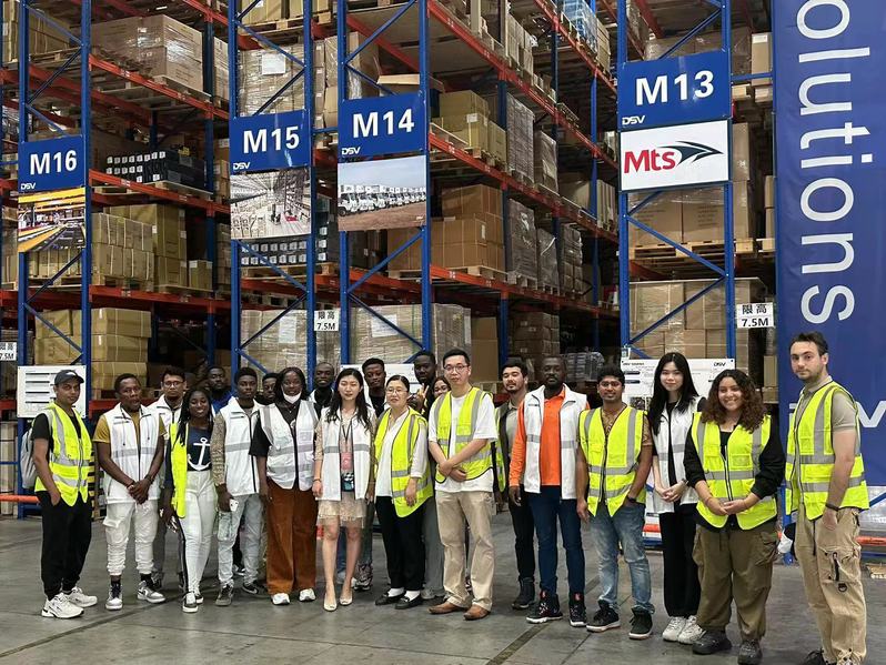 On the morning of June 25th, 2023, the international students from the College of Transport and Communication at Shanghai Maritime University, embarked on a study trip to DSV's warehouse located in Shanghai Yangshan Free Trade Zone. The trip was led by Dr. Wang Qin from the Department of Logistics Management and Dr. Fu Qiang from the Department of Transportation Management (Shipping).